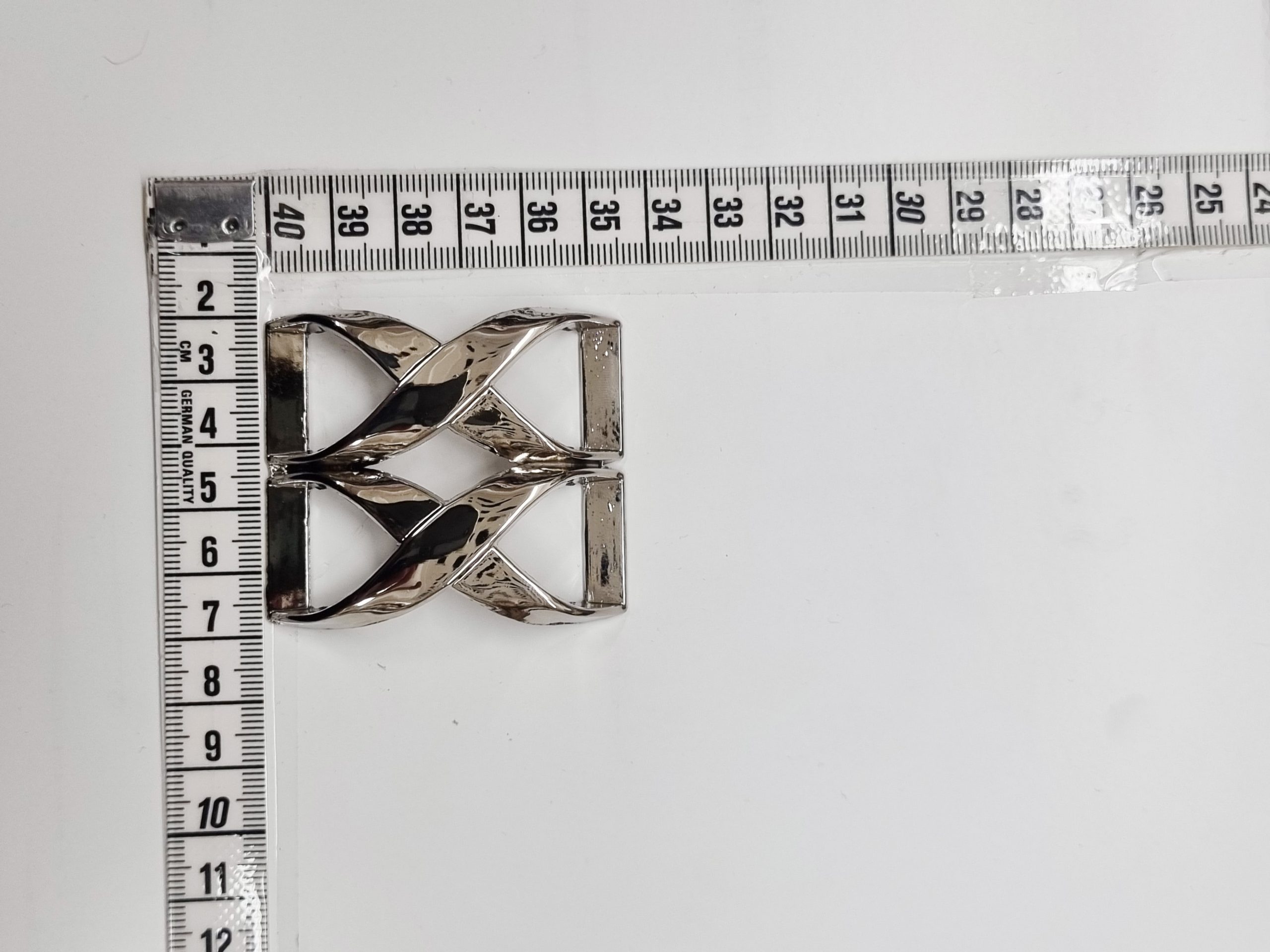 Jolie attache métal argenté qui peut aussi être utilisée en boucle de ceinture.