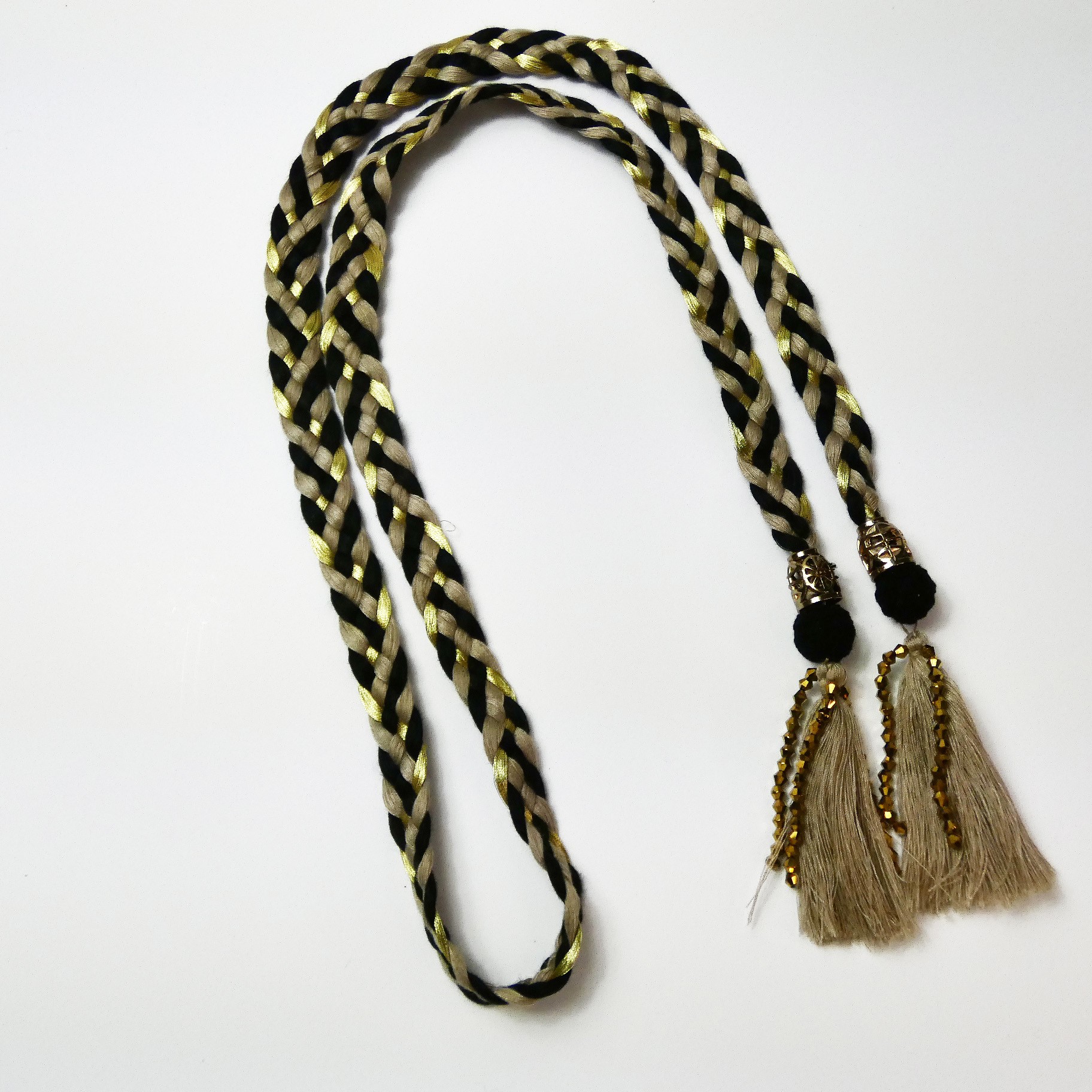 Ceinture fantaisie tréssé pompons polyester avec perles.