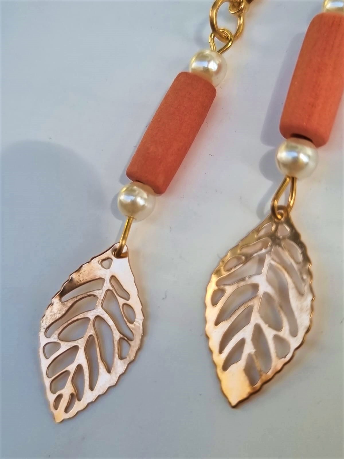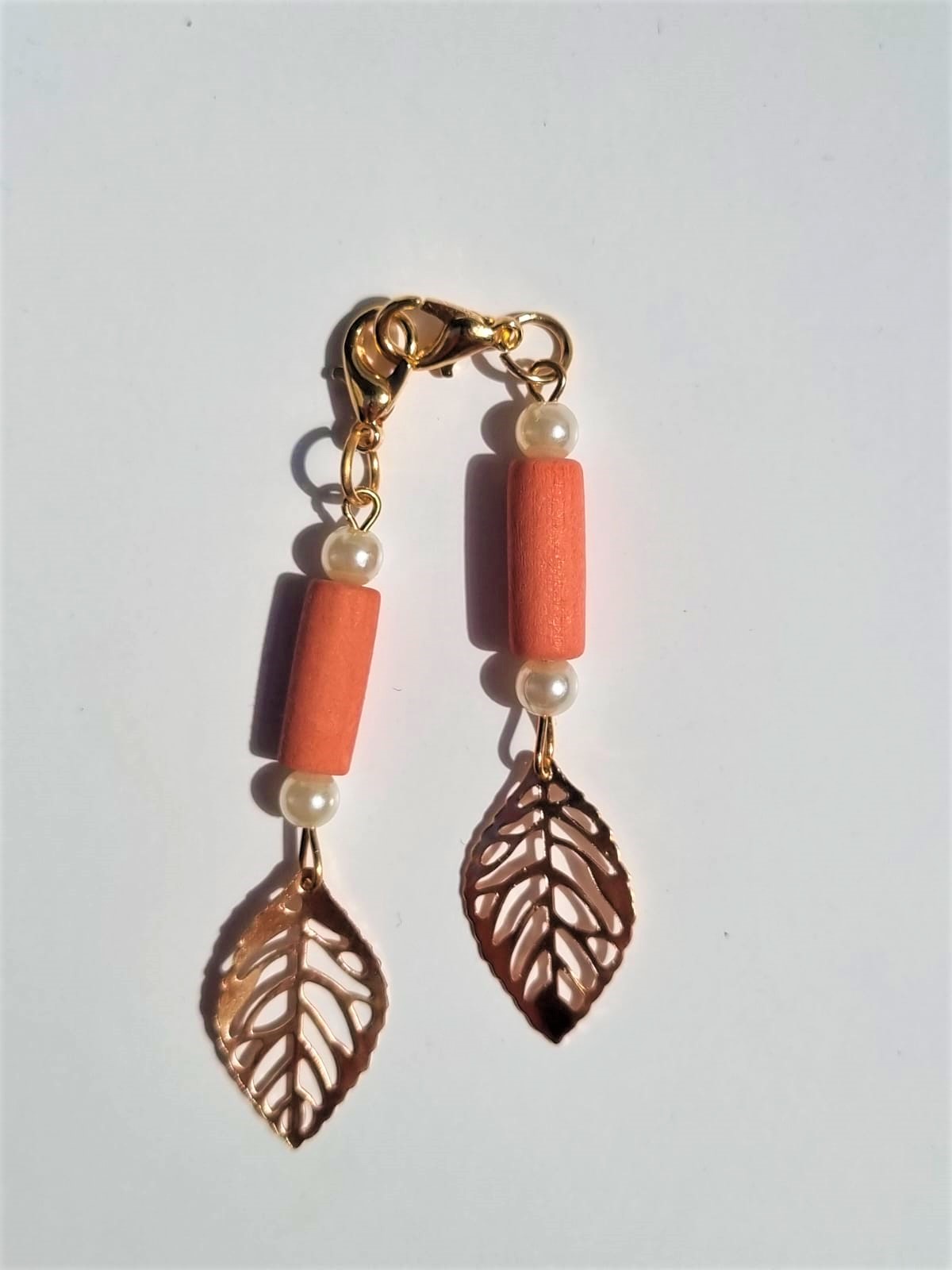 Petits pendantifs mousquetons avec  perles et petite feuille finition doré.